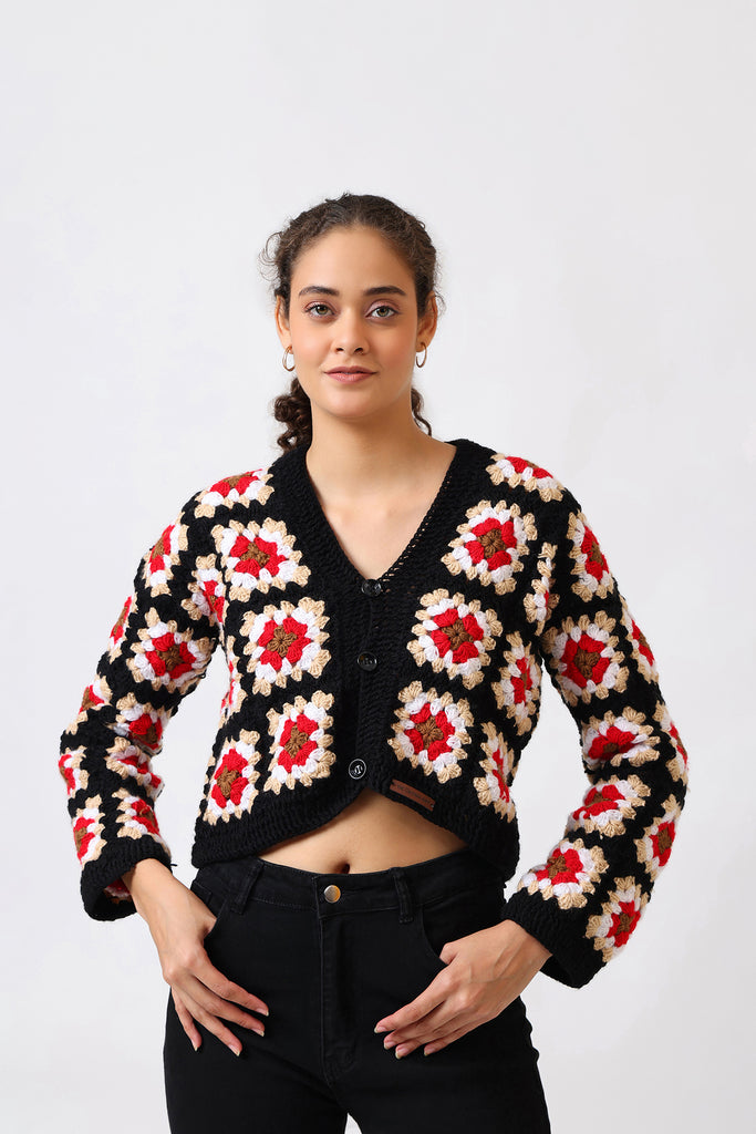Garden Muse – Chunky Multi-Rose Granny Square Cardigan