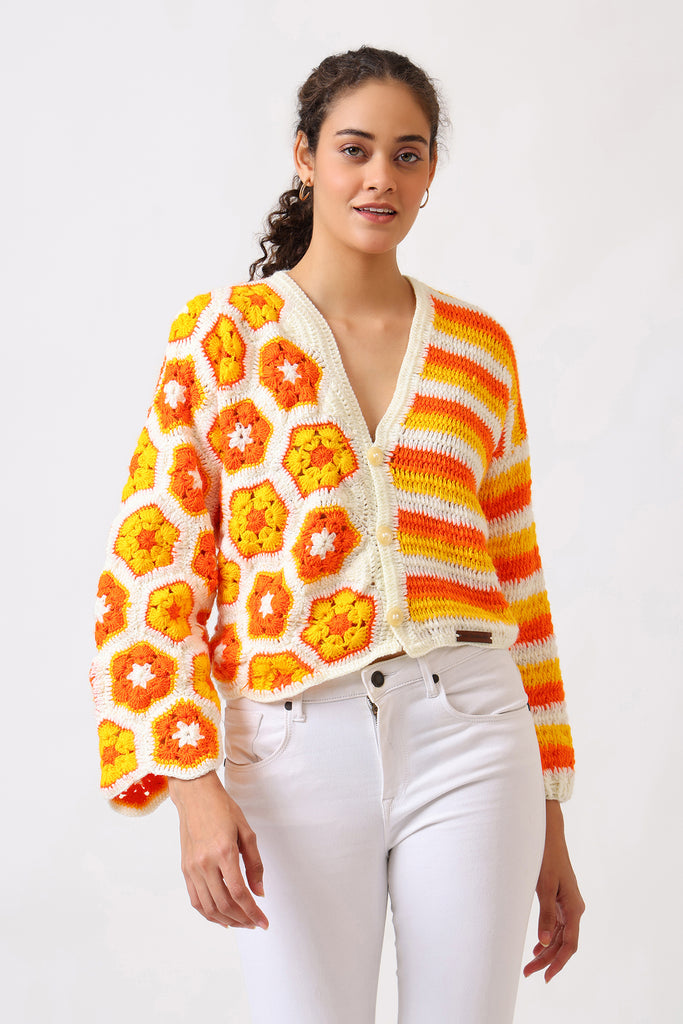 Sun & Sand Knitted Cardigan – Yellow & Cream