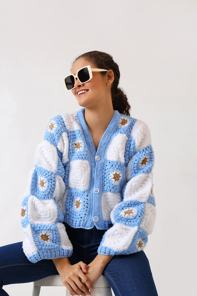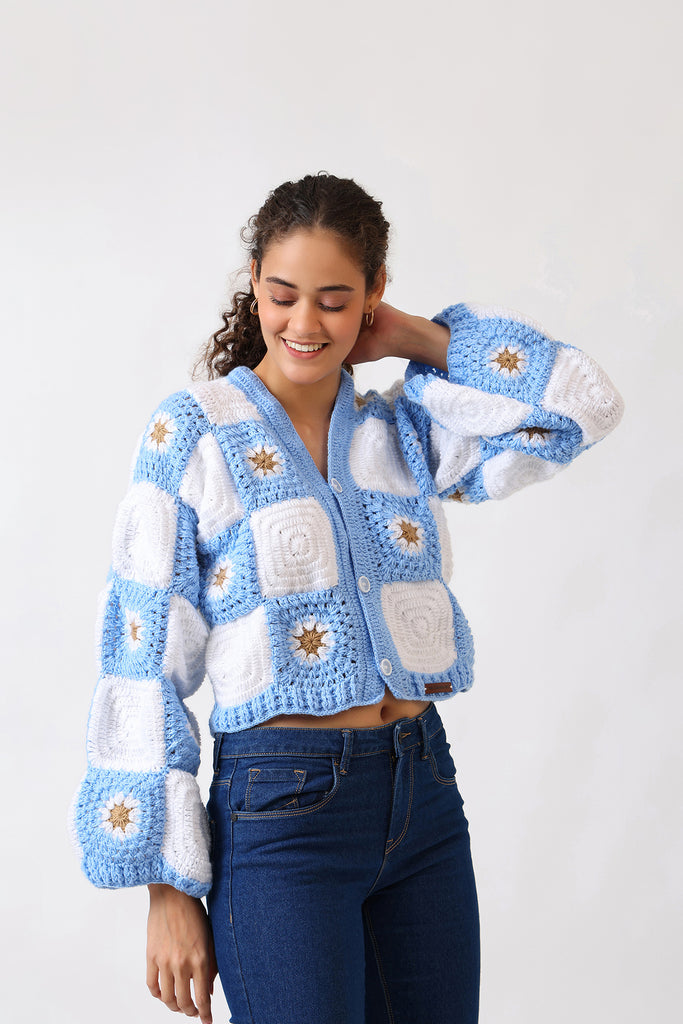 Bright, bold, and bursting with handmade love — Harvest Flower Cardigan is a wearable garden of joy. Crocheted entirely by hand using the classic granny square technique, this cardigan brings together sunshine yellows, blooming pinks, and leafy greens in a lively symphony of color.