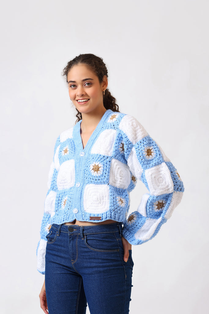 Each square is like a mini flower patch, carefully stitched by our women artisans — a process that takes hours of focus and heart. Whether you're dressing for a brunch, a vacation, or simply to lift your mood, this piece radiates playful charm and soulful craftsmanship.
