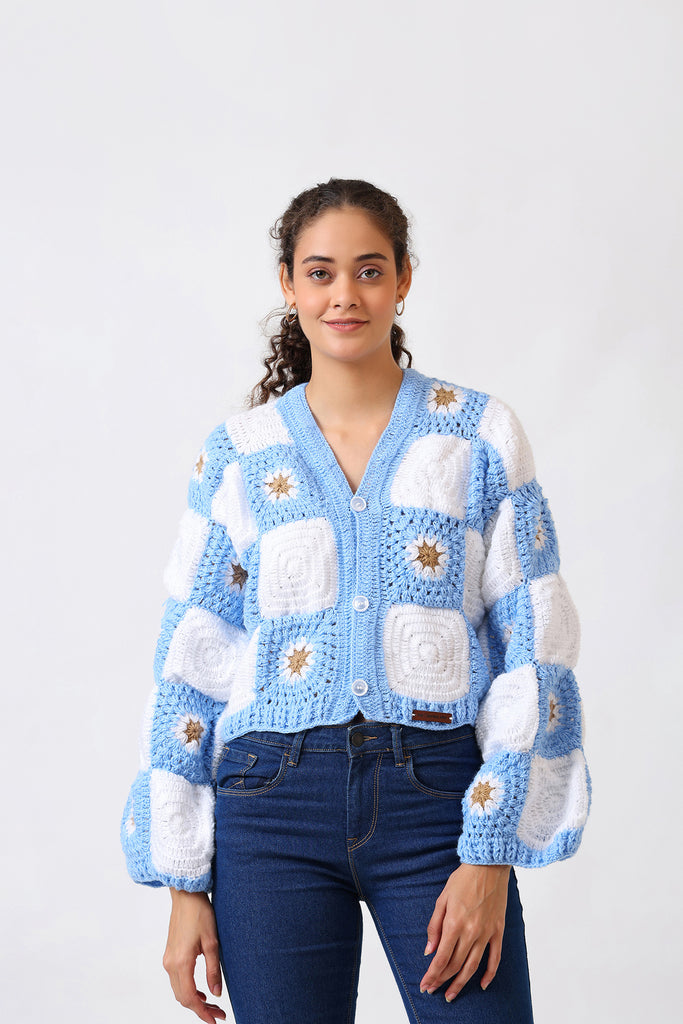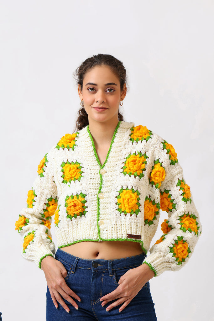 Rose Cardigan Crochet Pattern - Off White & Yellow