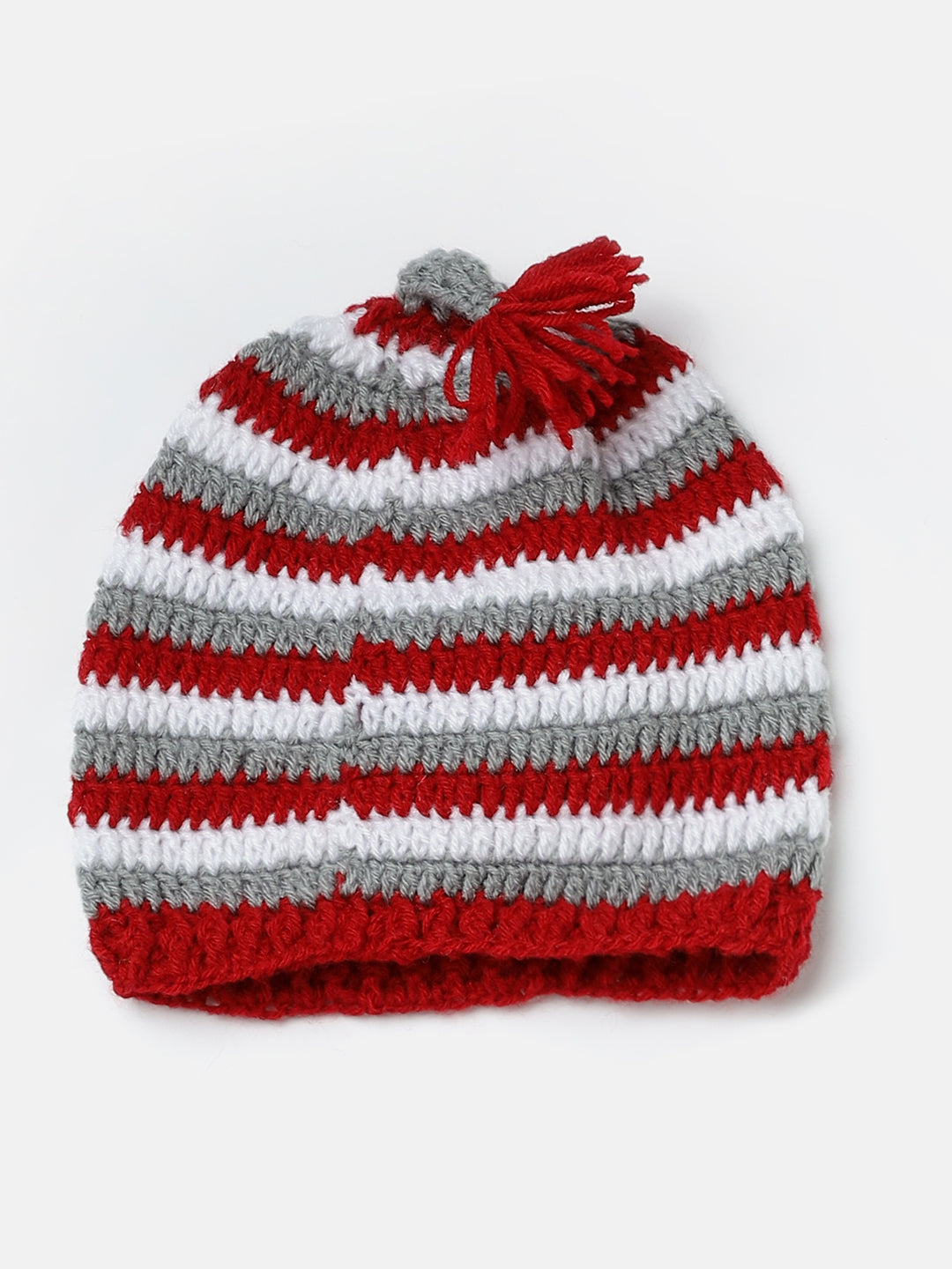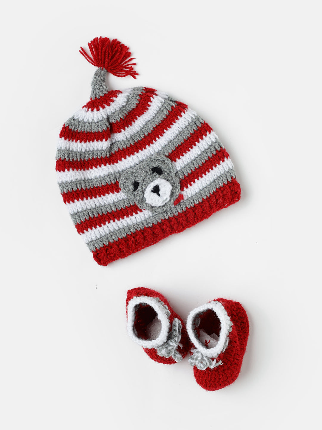 Handmade Cap With Booties , Pack of 2 Handmade - Red & Grey