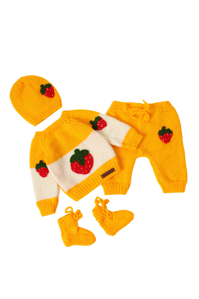 The Sweater Sets that we offer come in unique combinations of onesies, rompers, dungarees, warm pants, with matching caps, mittens/gloves, socks or booties to cater to your baby's requirements from head to toe.