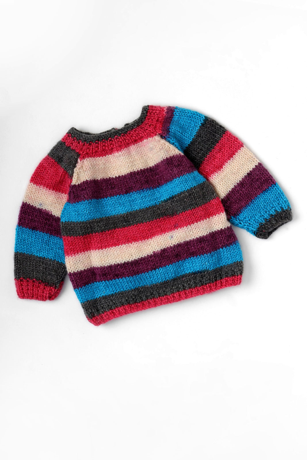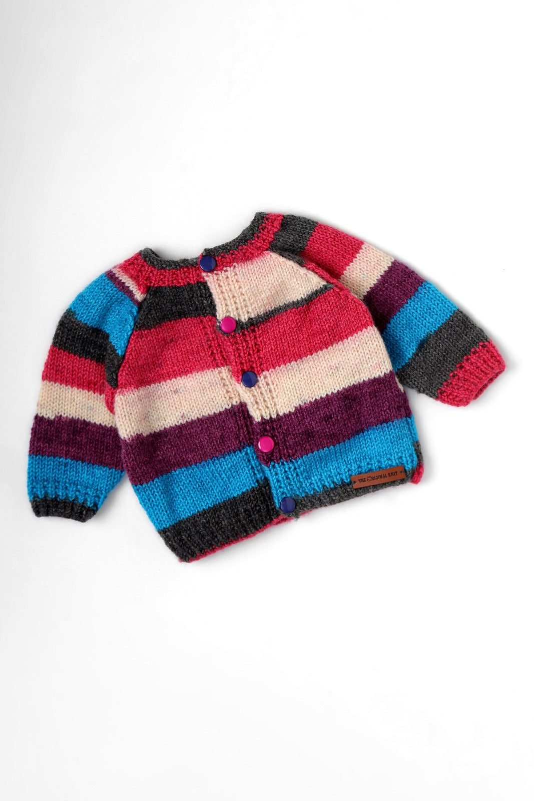 Handmade Sweater in Bold Stripes of Purple, Pink, White, Grey and Blue comes with matching .