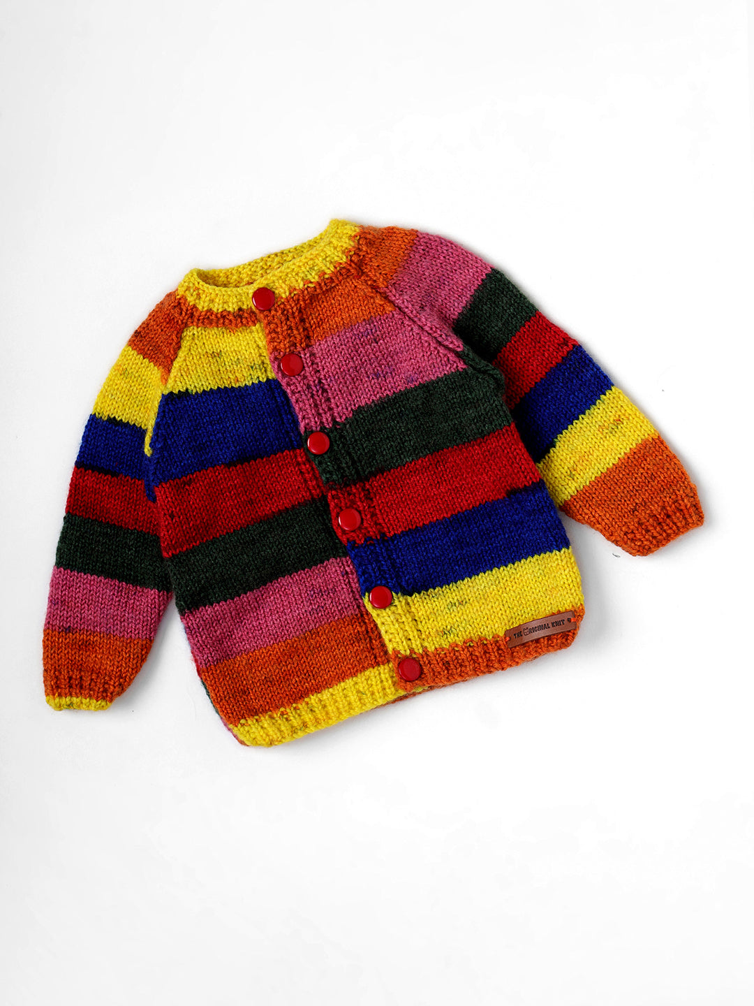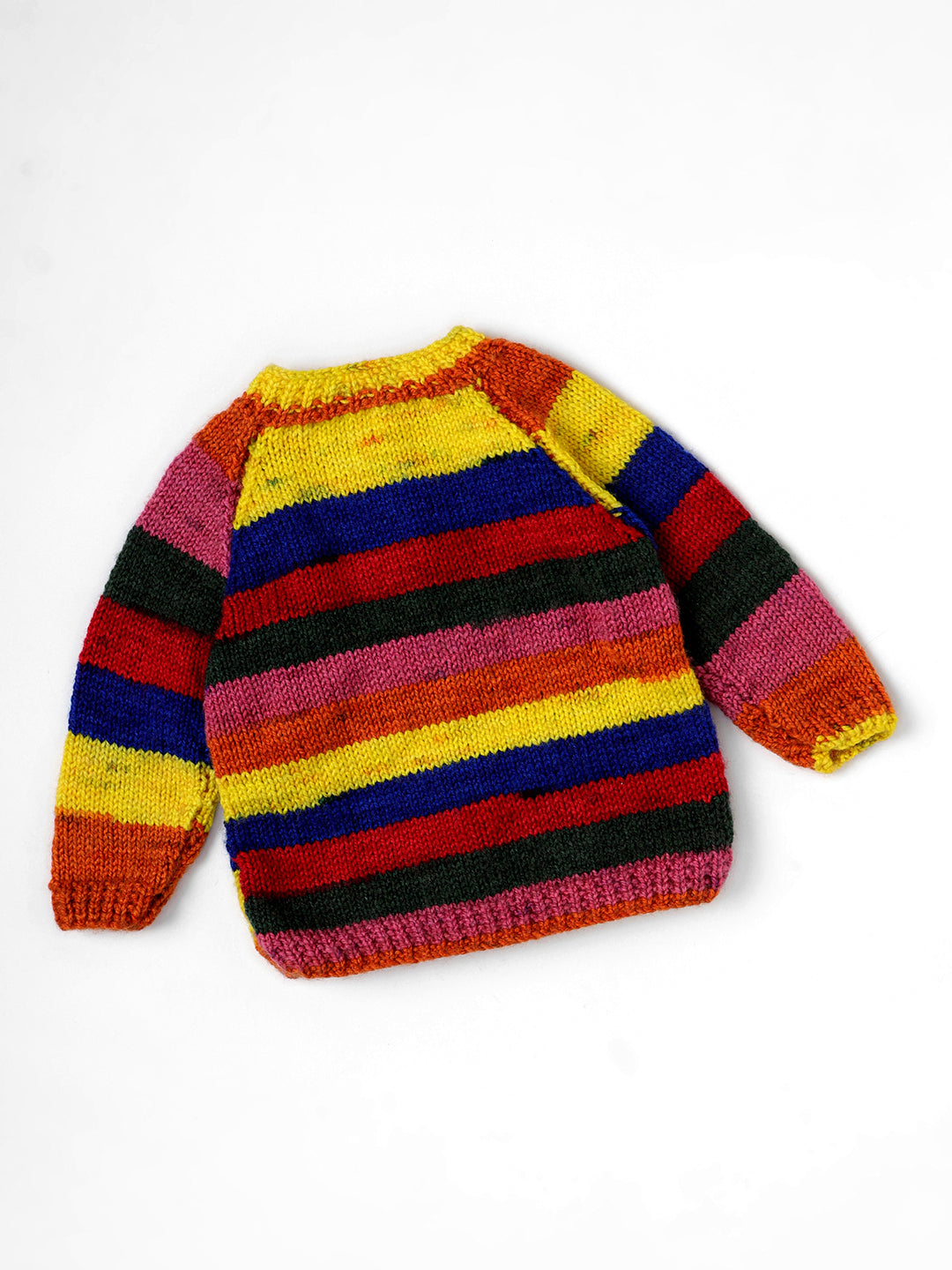 Handmade Sweater in Bold Stripes of Yellow, Orange, Pink and Blue comes with matching .