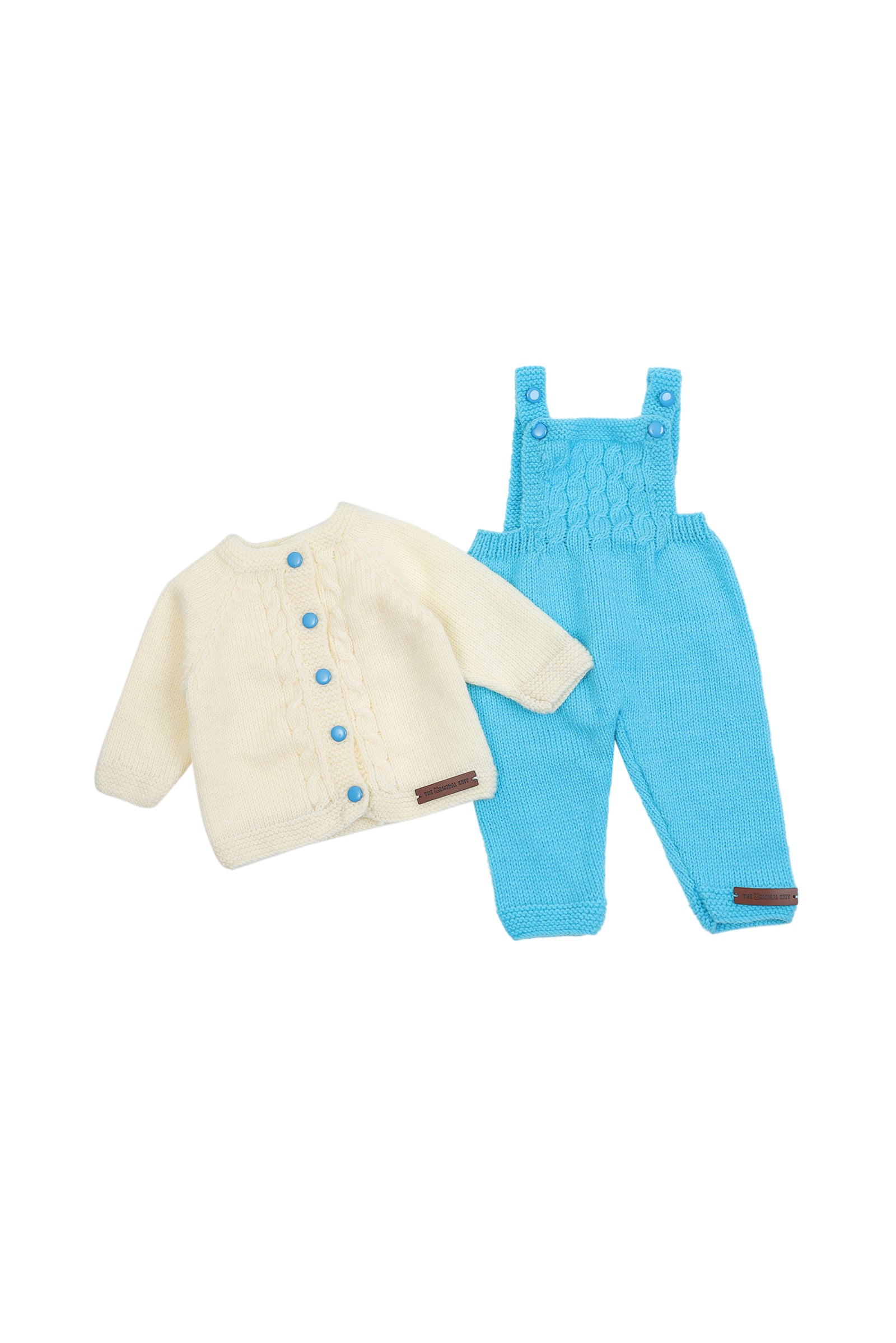 Bundle your little one up in timeless charm with this hand-knitted baby dungaree winter set in soothing blue and off-white. Featuring a classic cable knit design, this woollen set is soft, warm, and perfect for chilly days filled with play and cuddles. The cozy fit and durable knit make it a favorite for all winter adventures, keeping your baby snug and stylish from head to toe!