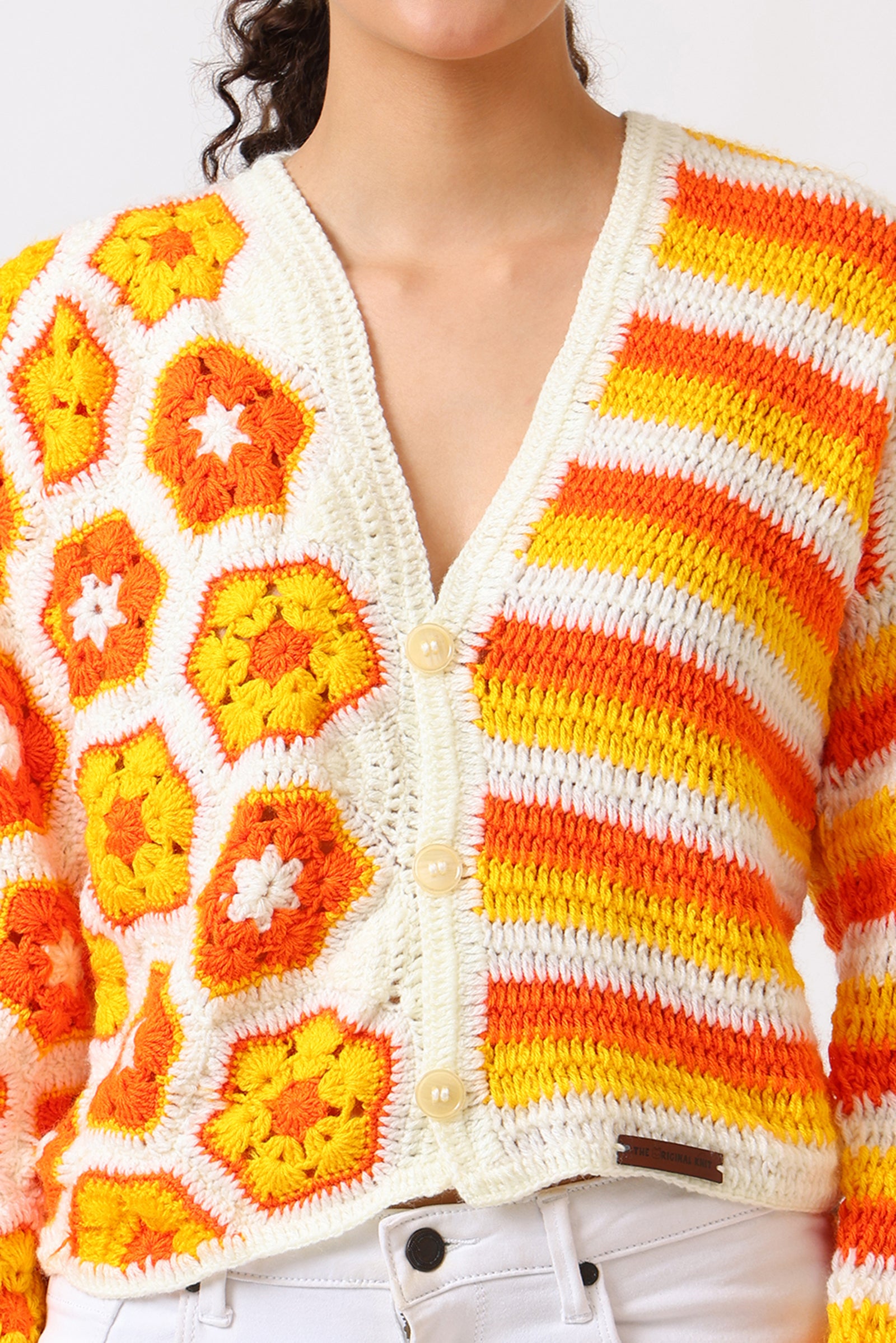 Each square is like a mini flower patch, carefully stitched by our women artisans — a process that takes hours of focus and heart. Whether you're dressing for a brunch, a vacation, or simply to lift your mood, this piece radiates playful charm and soulful craftsmanship.