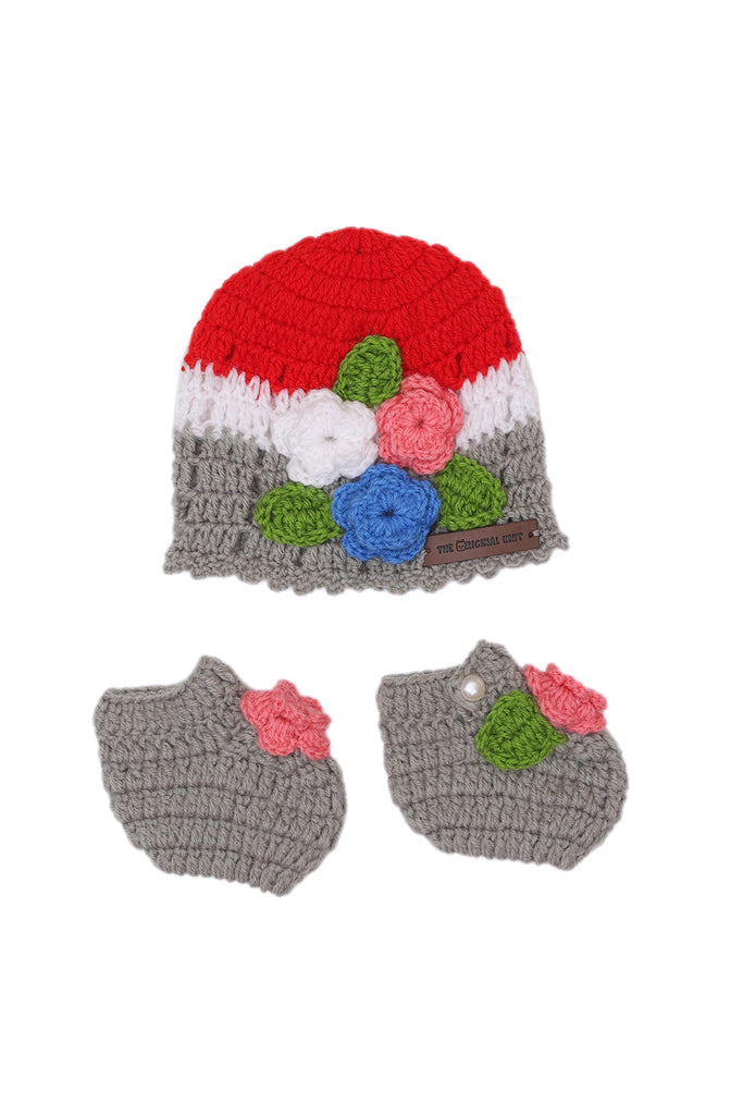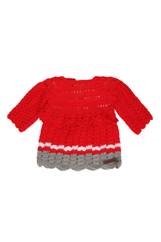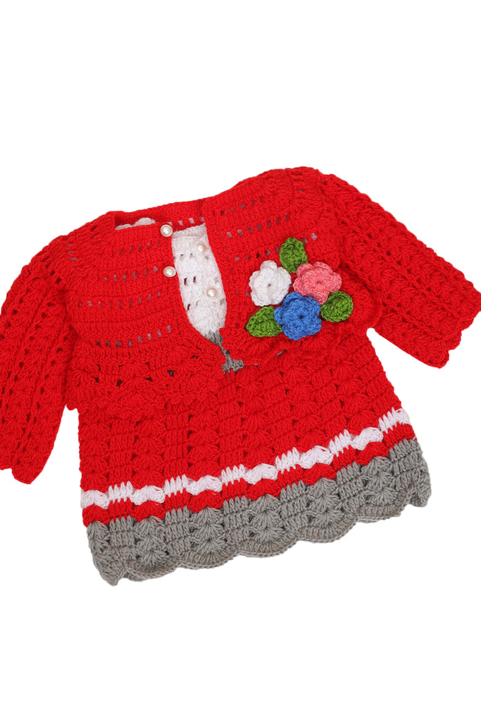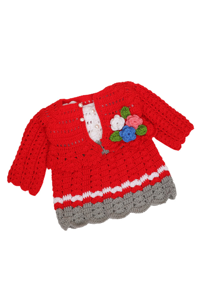 Dress your little darling in floral charm from head to toe! This red and grey crochet baby frock set features a lovely floral design, a dainty matching shrug, a cute hat, and the tiniest booties to complete the look. It’s soft, cozy, and bursting with handmade love—perfect for special outings, festive photos, or gifting something extra adorable. A full outfit of cuteness wrapped in yarn and petals!