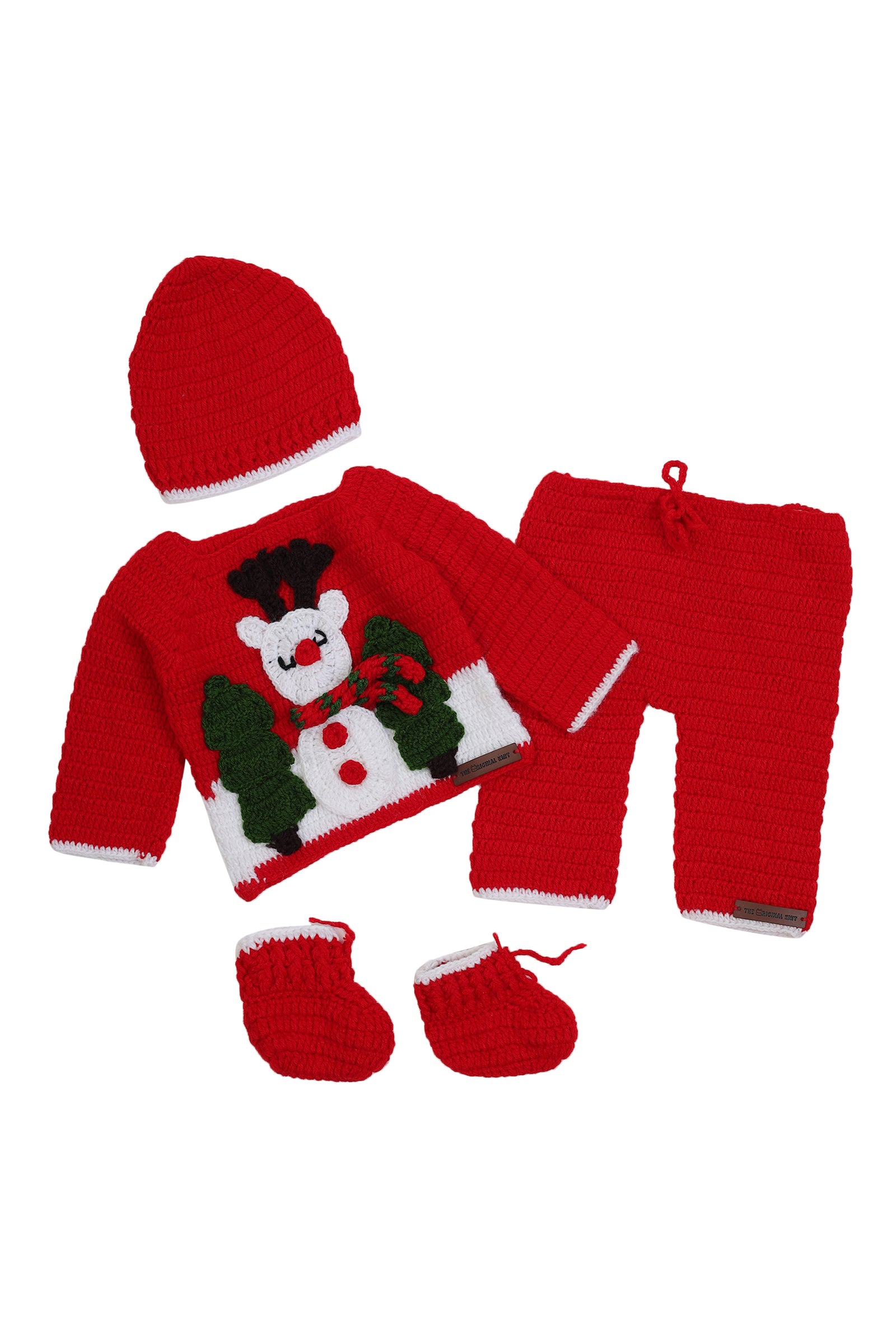 Bundle up your little one in holiday cheer! This adorable red woolen baby clothing set features a charming reindeer design—complete with its own tiny muffler for extra cuteness. Perfect for winter days and cozy nights, this set brings warmth, style, and a dash of festive fun. Whether it’s for a seasonal photo shoot, a special gift, or just everyday snuggles, your baby will be the cutest little reindeer in the room!Material & Care