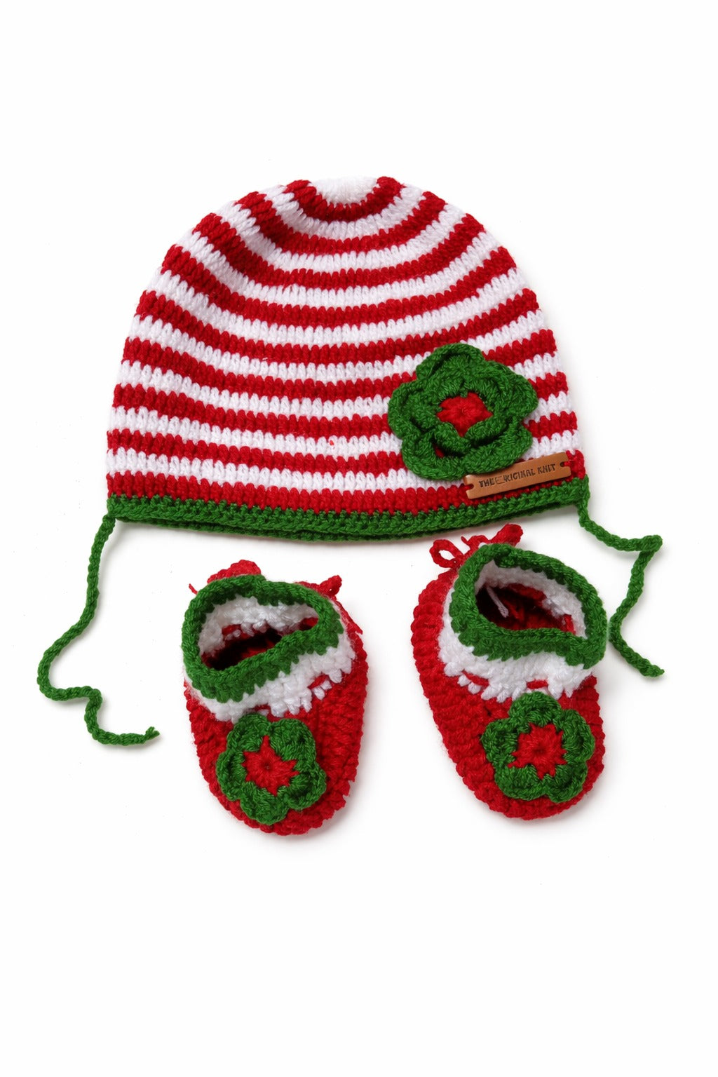Handmade Cap With Booties- Green & Red