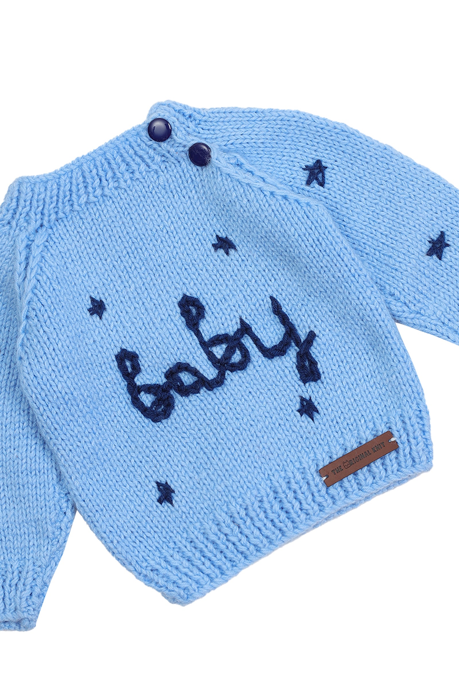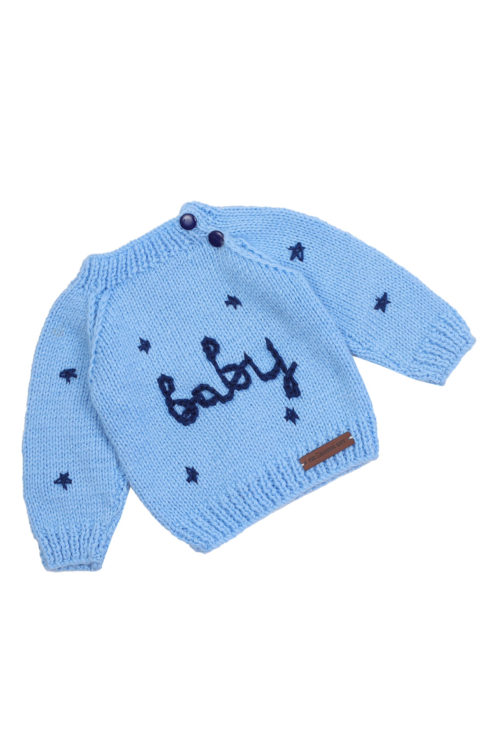 Wrap your little one in dreamy comfort with this handmade sweater and pajama set in soothing ice and dark blue tones. Thoughtfully crafted from soft, baby-friendly fabric, the set is adorned with delicate embroidered stars and the word "Baby" for a sweet, personalized touch. Cozy yet breathable, it's perfect for naps, playtime, or special moments. This charming set makes a beautiful gift for newborns, baby showers, or stylish everyday wear.