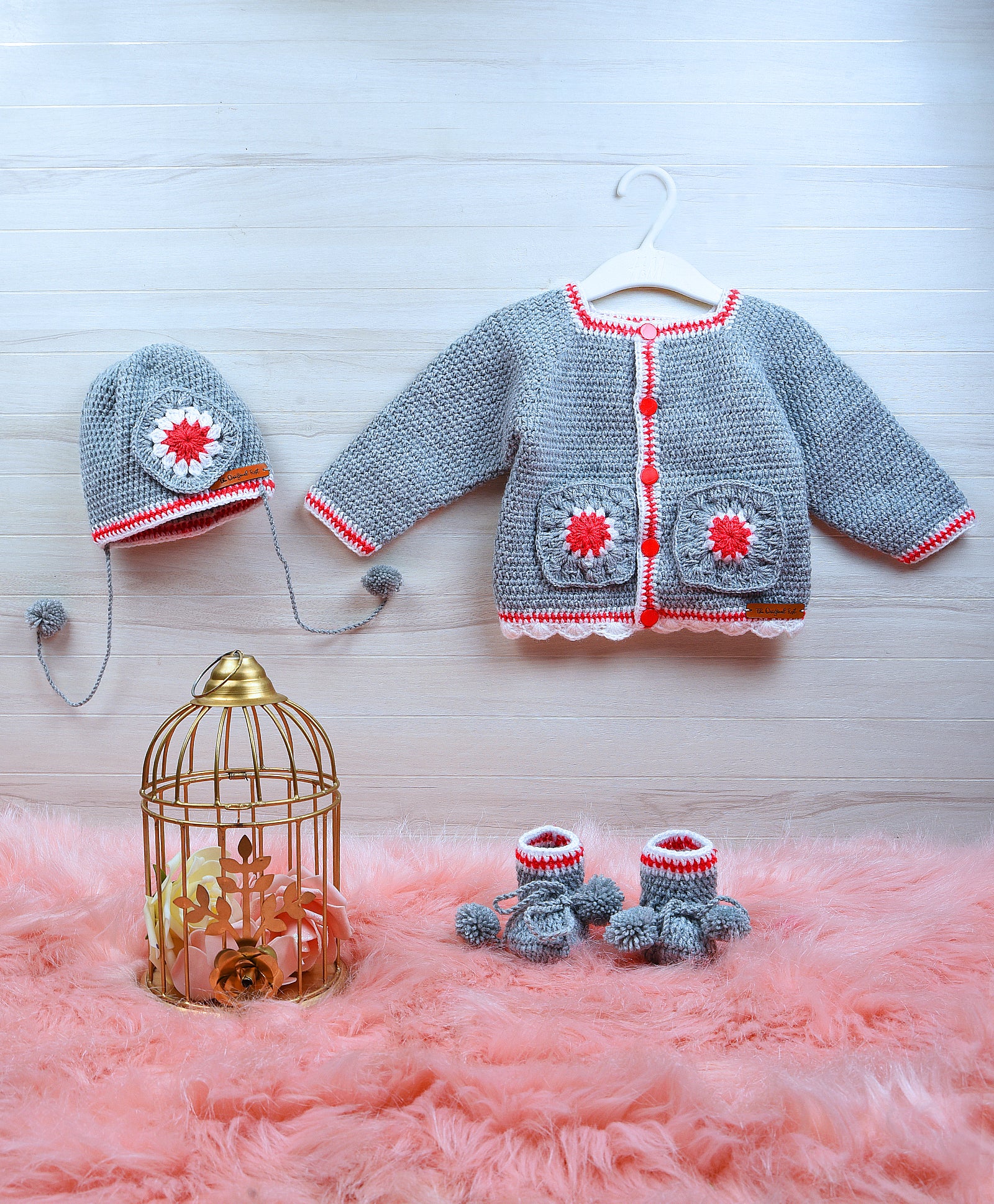 Handmade Sweater Set - Grey - 12-18M is backordered and will ship as soon as it is back in stock.