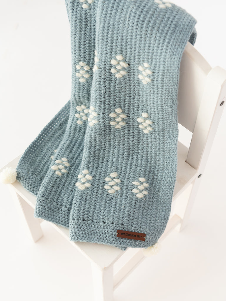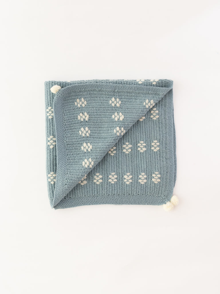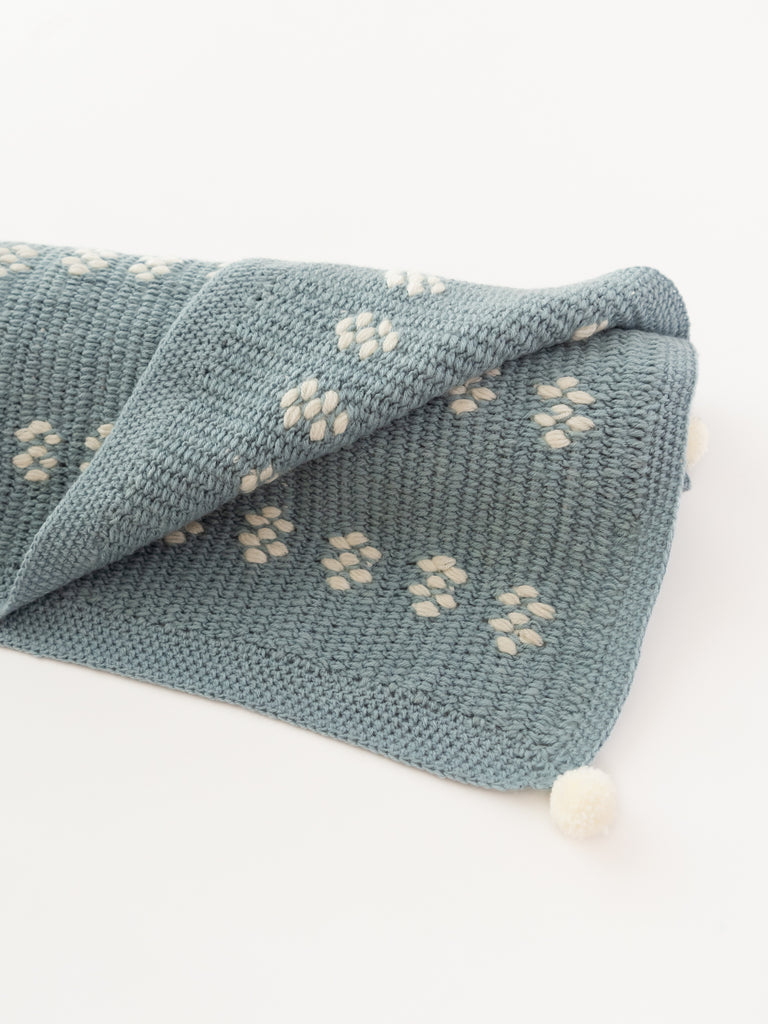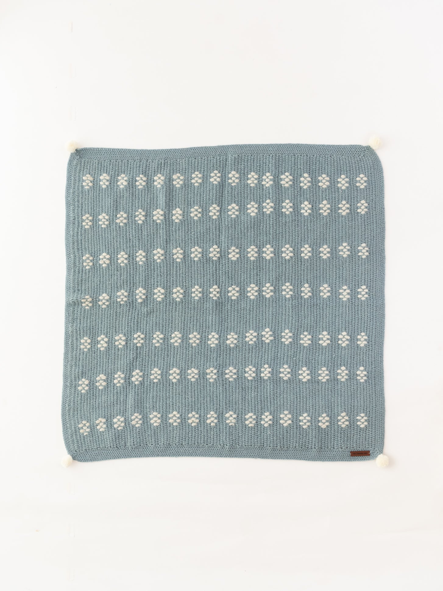 Handmade Self Design Pom Pom Blanket- Grey & White