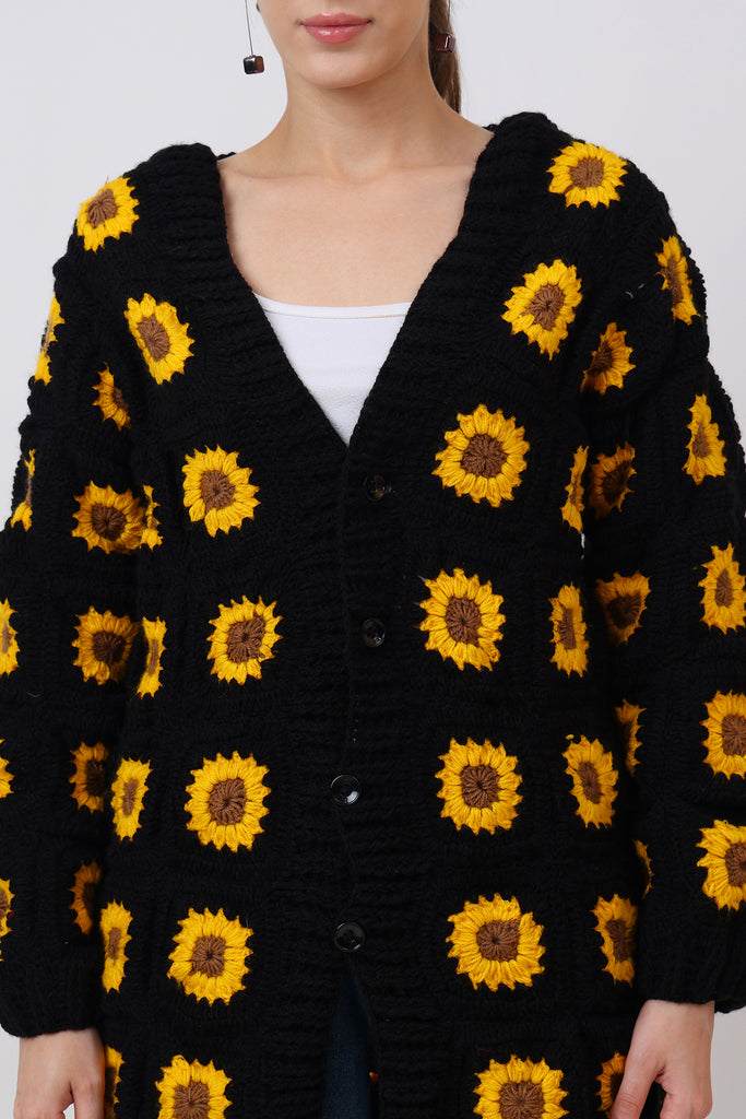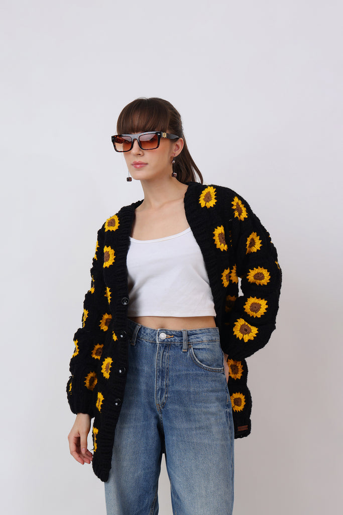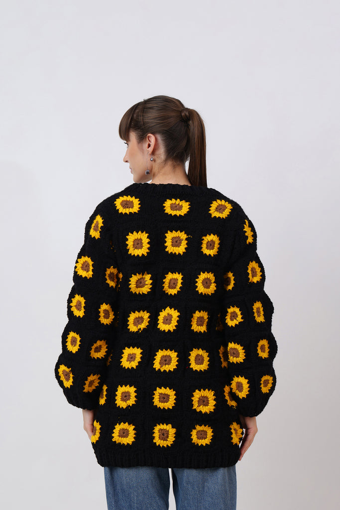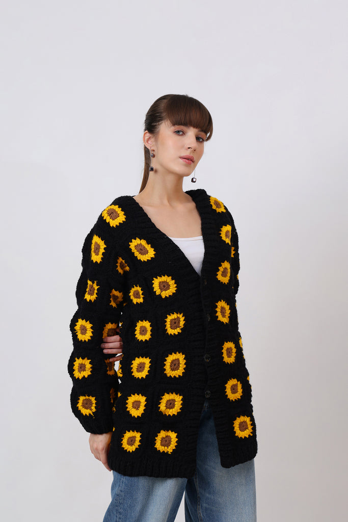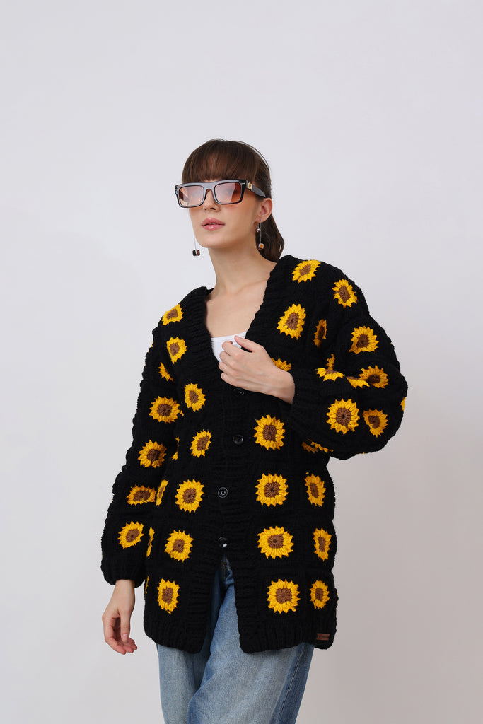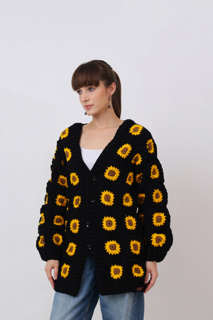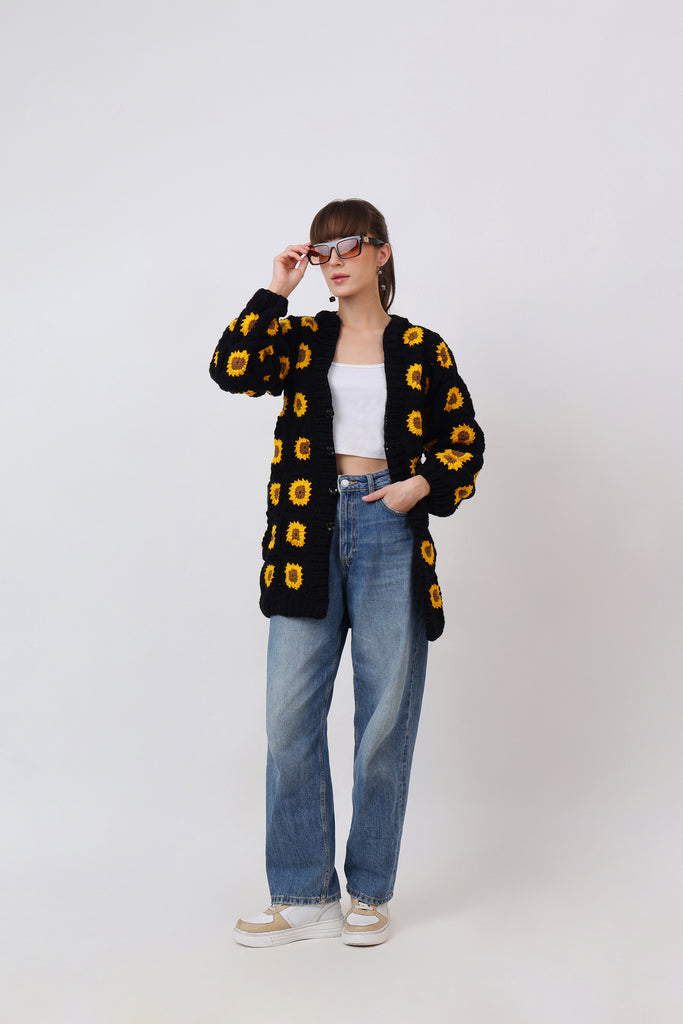 Bright, bold, and bursting with handmade love — Rose Cardigan Crochet Pattern is a wearable garden of joy. Crocheted entirely by hand using the classic granny square technique, this cardigan brings together sunshine yellows, blooming pinks, and leafy greens in a lively symphony of color.
