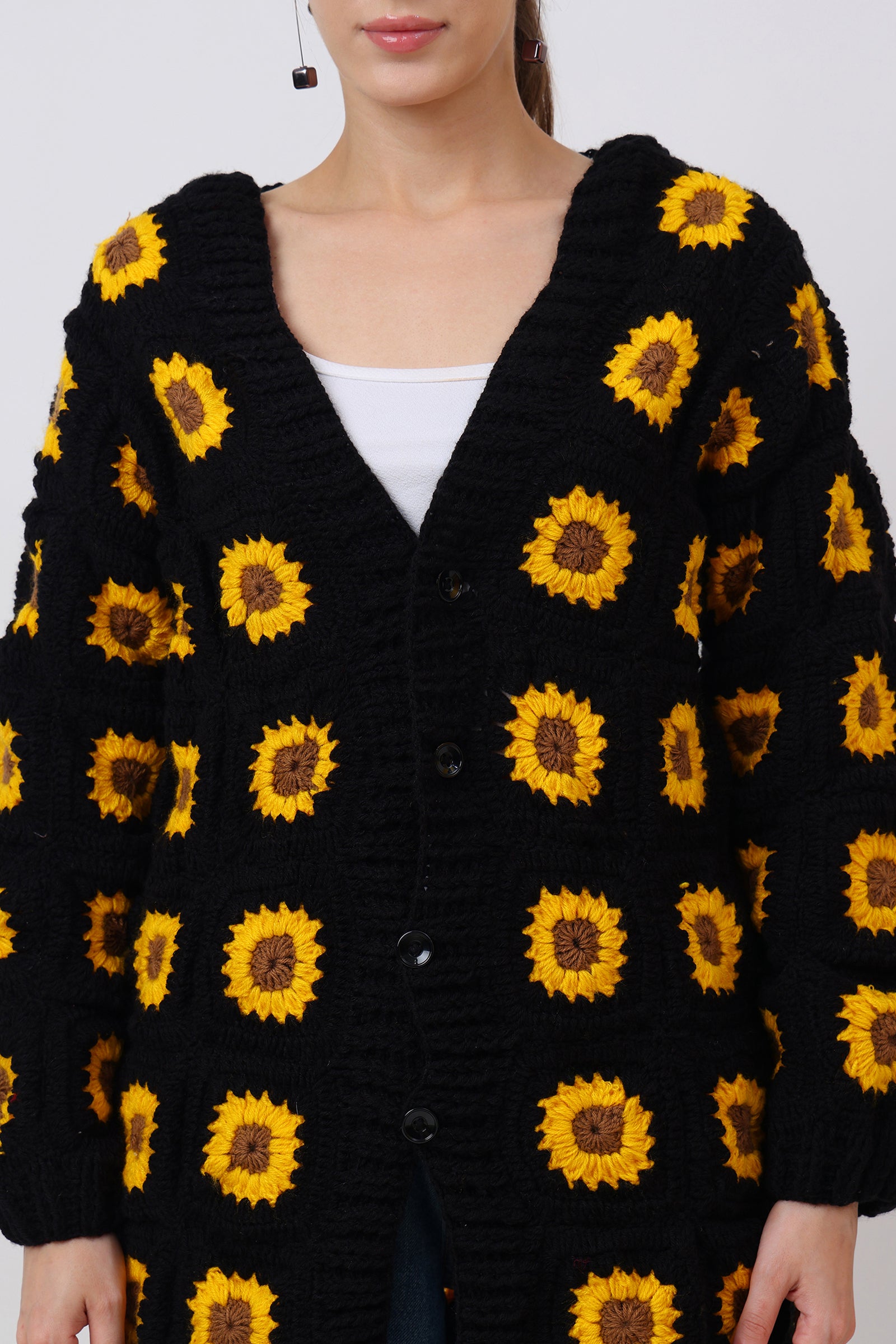 Each square is like a mini flower patch, carefully stitched by our women artisans — a process that takes hours of focus and heart. Whether you're dressing for a brunch, a vacation, or simply to lift your mood, this piece radiates playful charm and soulful craftsmanship.